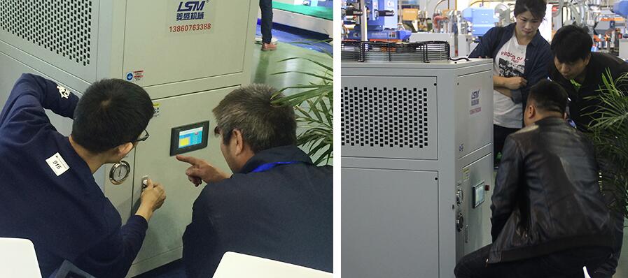 菱盛的外貿(mào)業(yè)務(wù)員正在傾情接待外國客商,為他們細(xì)心講解我們的冷水機(jī)