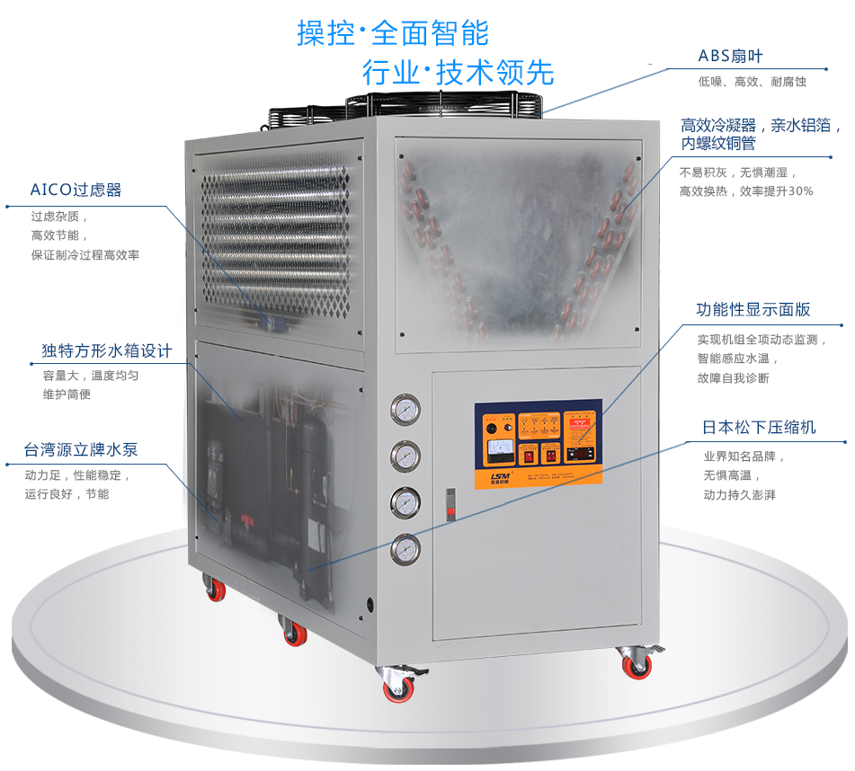 開(kāi)放式冷水機(jī)精選公司開(kāi)發(fā)出的高智能PLC、PC級(jí)電腦控制系統(tǒng),可做遠(yuǎn)程監(jiān)視與控制,具有自動(dòng)加卸載、定時(shí)開(kāi)關(guān)機(jī)以及記錄故障原因等多重功能;操作簡(jiǎn)單,主機(jī)與電源接駁。故障率低,安全系數(shù)高,安裝簡(jiǎn)單,系統(tǒng)控制可即時(shí)調(diào)整,直觀可靠。